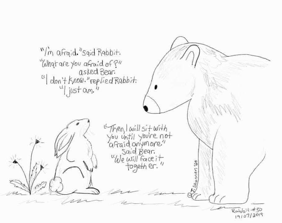 (Image: In March of 2020 this drawing of Rabbit & Bear went viral. The dialogue reads—"I'm afraid." said Rabbit.